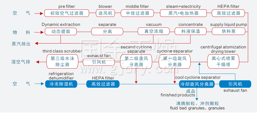 中藥浸膏專用噴霧干燥機是專門用來解決中藥浸膏和植物提取液的噴霧干燥機,它解決了物料在原LPG高速噴霧干燥機在中藥浸膏干燥中出現的以下情況: