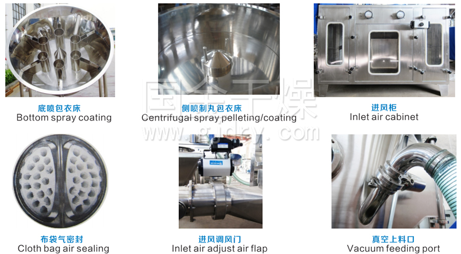 產品簡介:應用FBGC多功能制粒包衣機是集噴霧干燥—制粒—離心制丸—流化包衣干燥于一體的多功能設備。該機兼容多種工藝操作。特別適用于醫藥、食品、化工等行業多品種、多劑型制粒、制丸及包衣。特點1.集制粒、制丸、包衣多種功能于一體。2.粉體物料制粒。3.粉體物料包衣。4.粉體物…